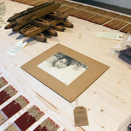 En “de Navegación y Catalogación” el Col·lectiu Puntes, se apropia de “Vela de diosas”, una obra del año 1995 y navega sin complejos por un mar de oleadas de reciclaje, descodificando y pervirtiendo su sentido inicial, y donde elementos personales y antiguos serán también rescatados, envasados al vacío y catalogados conjuntamente, en un juego entre el caos y la entropía.