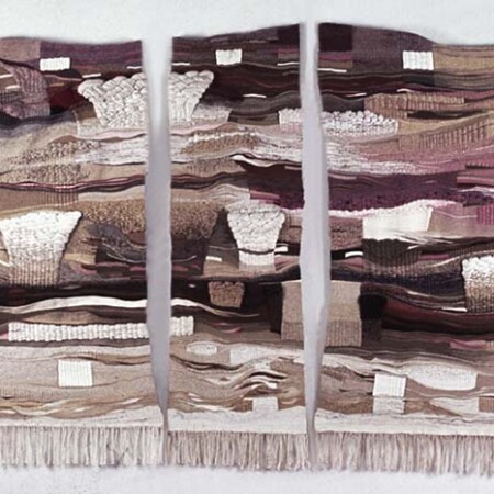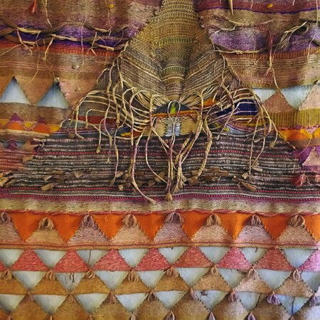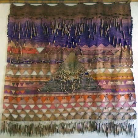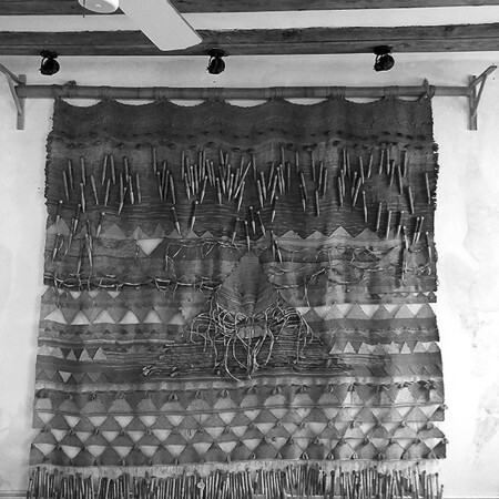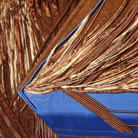 Estas piezas-murales recogen la genealogía familiar y junto con el lenguaje tapicero exploran expresiones nuevas con la interrelación entre los oficios de tradición femenina y los nuevos recursos plásticos contemporáneos.