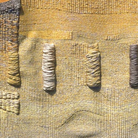En la obra "Agujas", una vez más, encontramos las herramientas empleadas para la construcción de un tapiz, haciéndose parte de la pieza, y esta vez también como gesto final de una etapa de trabajo y homenaje a un oficio que me ha permitido ver y filtrar otros lenguajes no habituales dentro del arte contemporáneo.